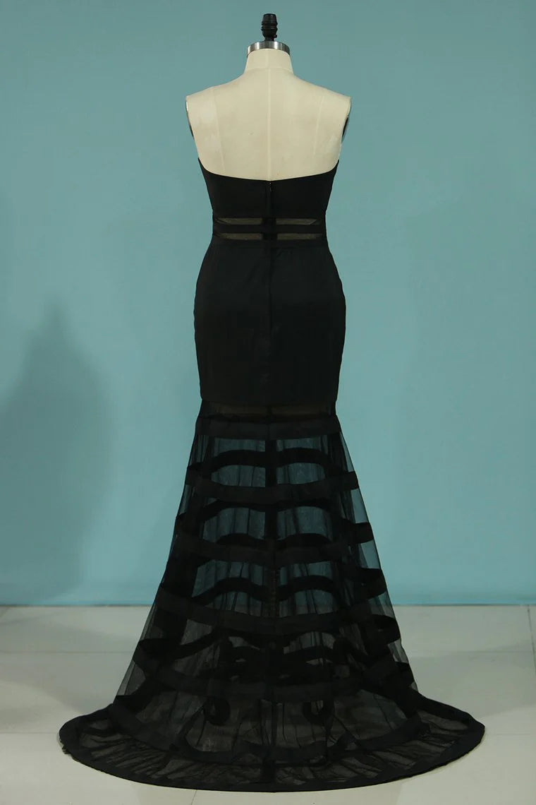 Sweetheart Mermaid Party Dresses Tulle & Chiffon Sweep Train