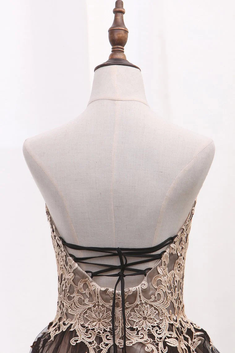 Tulle Party Dresses A Line Sweetheart With Applique Sweep Train