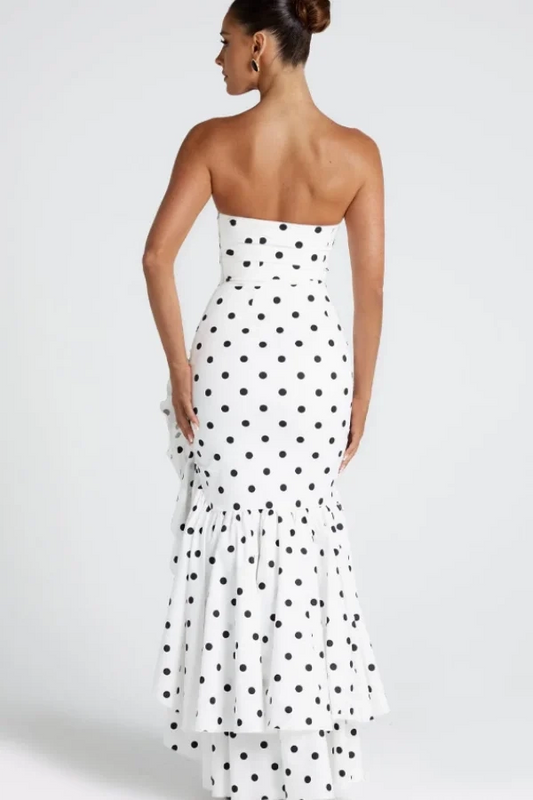 Chic Mermaid Strapless Polka Dot White Ruffle Prom Dress