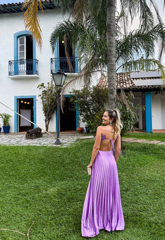 Glamorous A-Line Halter Cut-Out Lavender Floor-Length Prom Dress