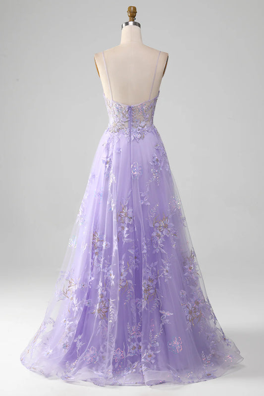 Beaira A-Line Sequins Purple Prom Dress with Embroidery