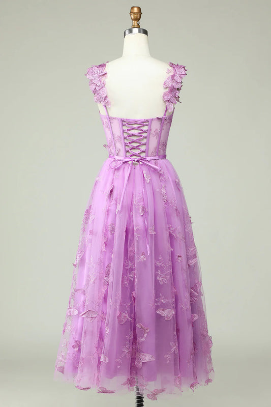 Beaira Purple A Line Butterflies Appliques Prom Dress