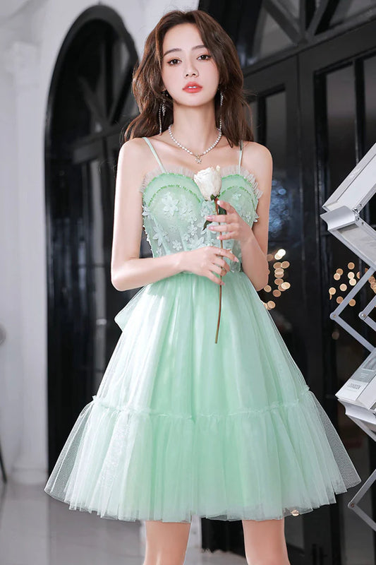 Mint Green Tulle Lace Short Homecoming Dress A-Line Mini Party Dress