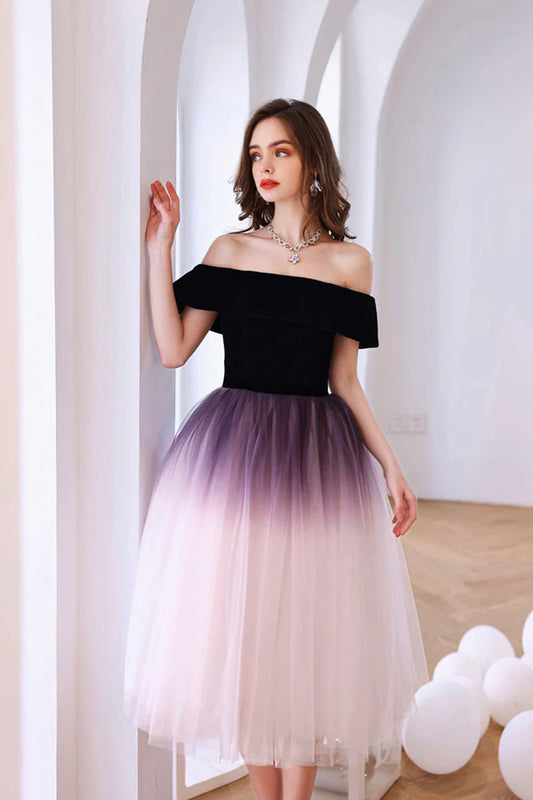 Cute Gradient Tulle Short Prom Dress Pageant Dress Off the Shoulder Evening Party Dress
