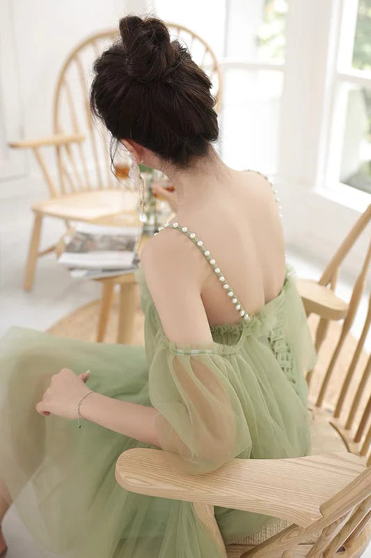 Green Spaghetti Strap Tulle Short Prom Dress Green A-Line Homecoming Dress