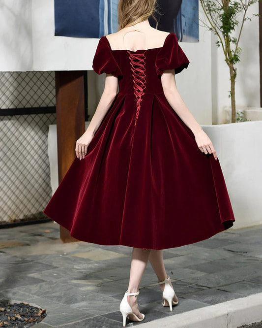 Velvet Scoop Lace Up A Line Homecoming Dresses Short Prom Dresses