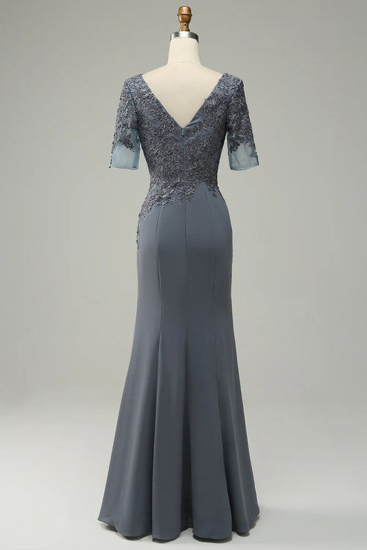 Grey Purple Mermaid Chiffon Mother of the Bride Dress with Lace