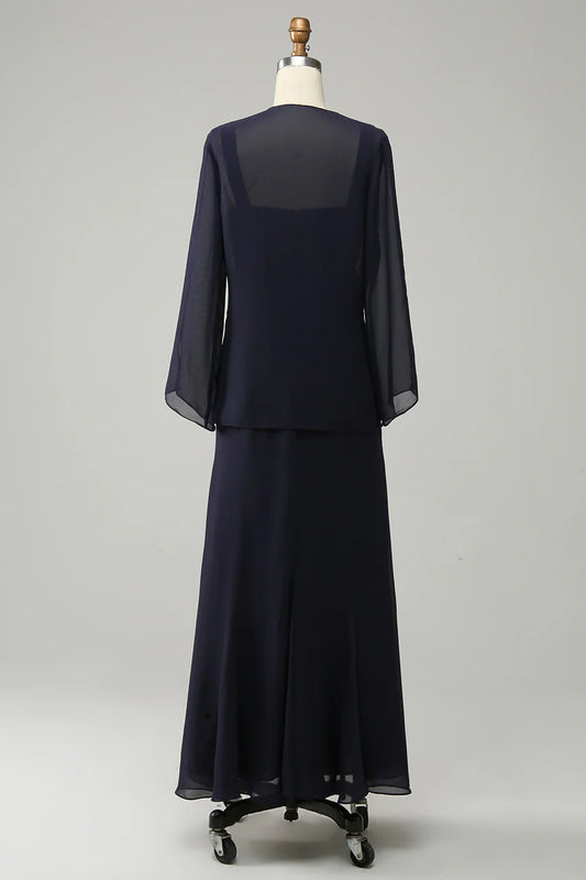 Navy Two Piece Sparkly Beaded Mother of the Bride Dress