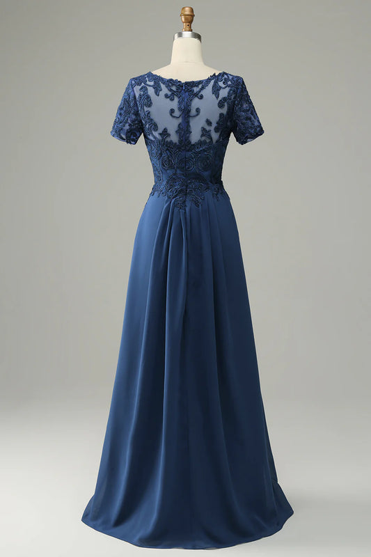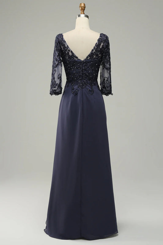 Long Sleeves Blue Mother of Bride Dress with Appliques