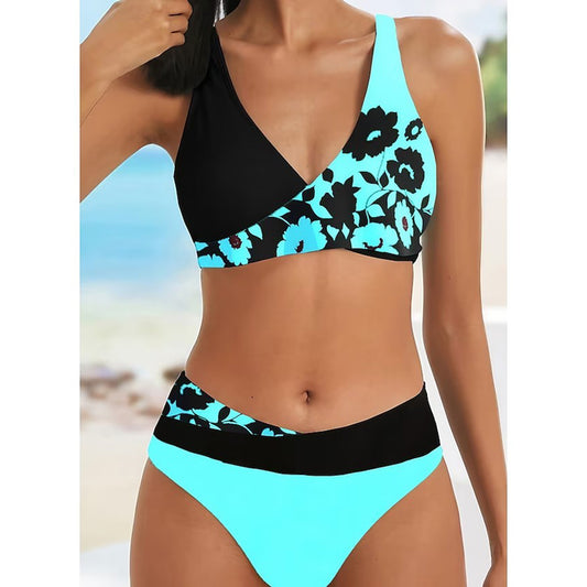 Women's Normal Swimwear Bikini 2 Piece Swimsuit 2 Piece Sexy Floral Color Block V Wire Vacation Beach Wear Bathing Suits