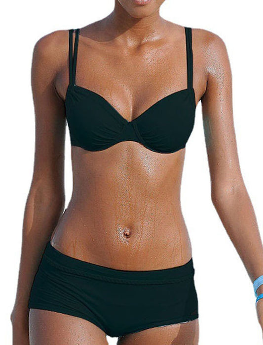 Women's Swimwear Bikini Shorts Swimsuit Halter 2 Piece Criss Cross Plain Stylish Push Up Bathing Suits