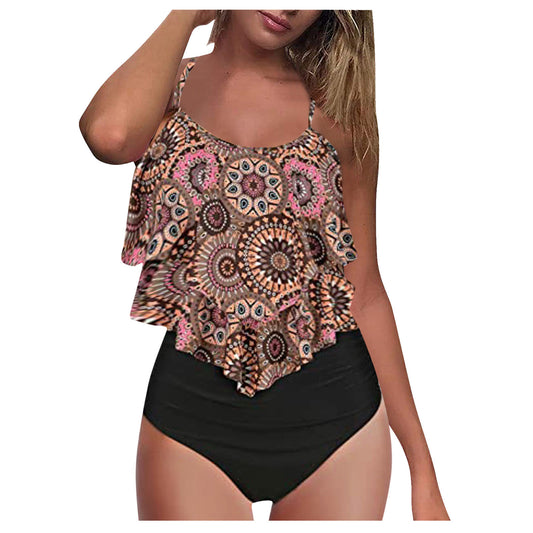 Polka Dot Paisley Boho Blouson Tankini Swimsuit
