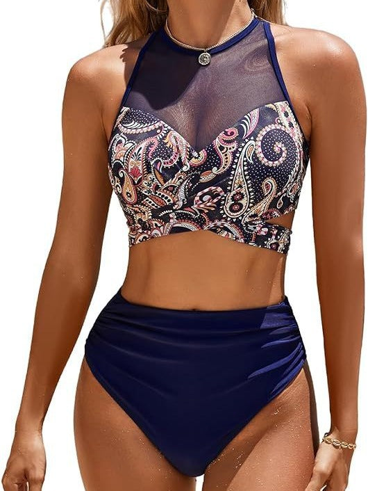 Women's Swimwear Tankini 2 Piece Swimsuit Paisley Patchwork Halter Paisley Beach Wear Summer Bathing Suits