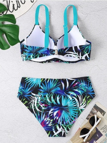 Women's Swimwear Bikini 2 Piece Swimsuit Backless 2 Piece Push Up Sexy Printing Leaf V Wire Vacation Beach Wear Bathing Suits