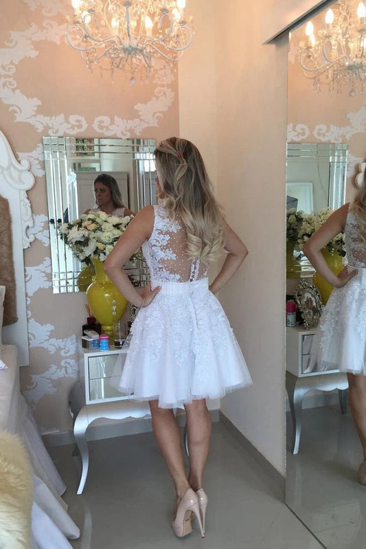 A Line Round Neck Short Homecoming Dresses Flower Appliques