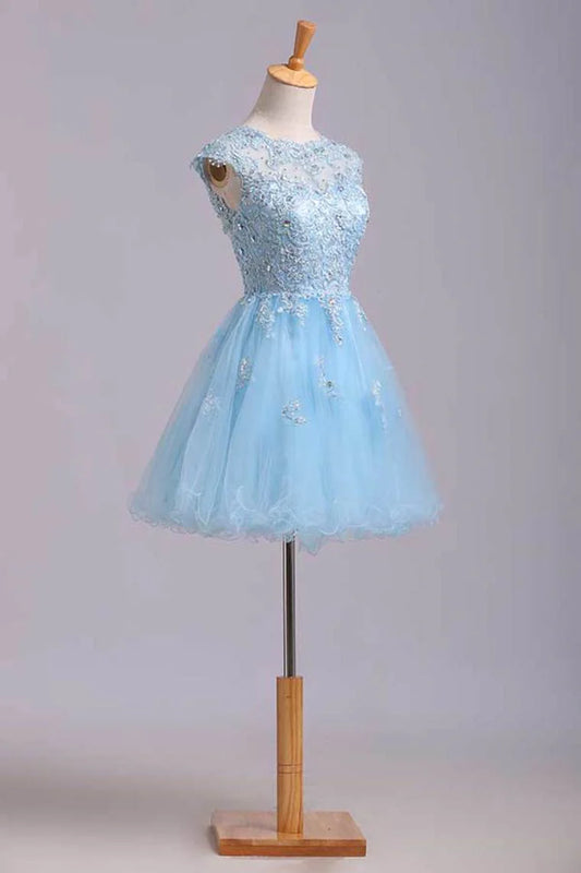Scoop Homecoming Dresses A Line Tulle With Applique And Beading