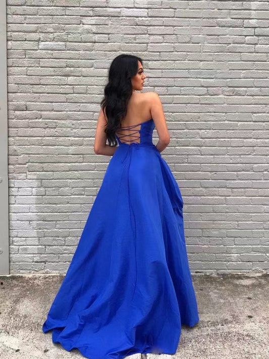 Sleeveless A-Line Strapless Slit Evening Dress Long Prom Dress