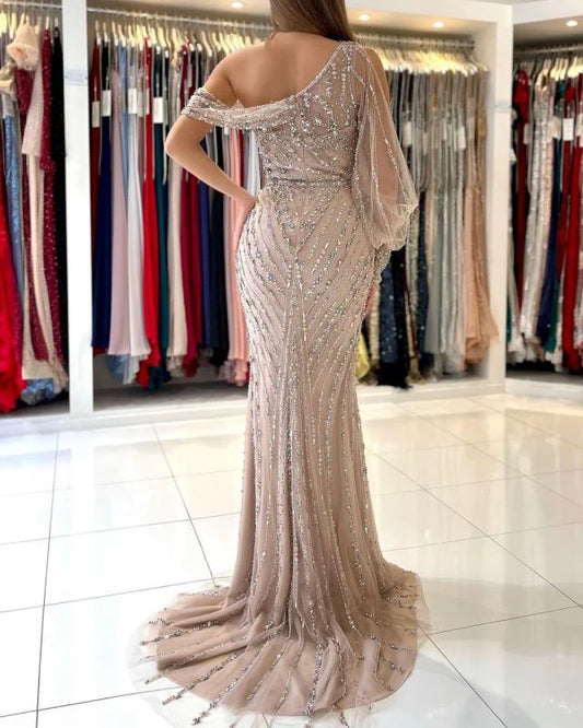 Sequin Prom Dresses Sheath/Mermaid One Shoulder Floor Length