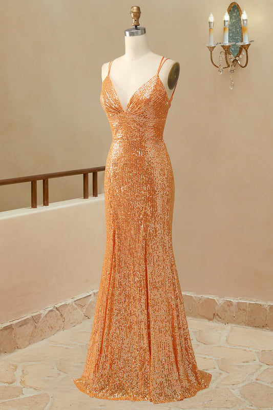 Glitter Spaghetti Straps Mermaid Sequins Prom Dresse
