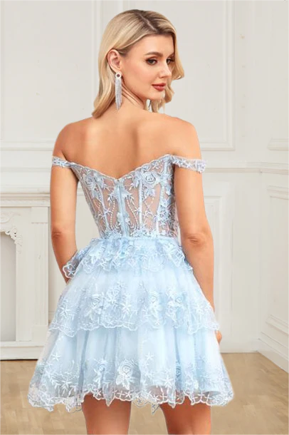 Homecoming Dresses A-Line Off-The-Shoulder Lace Applique