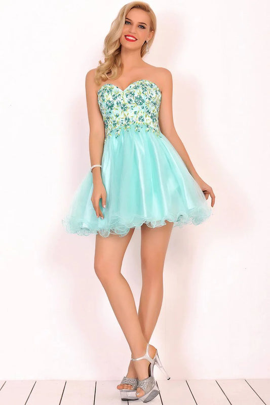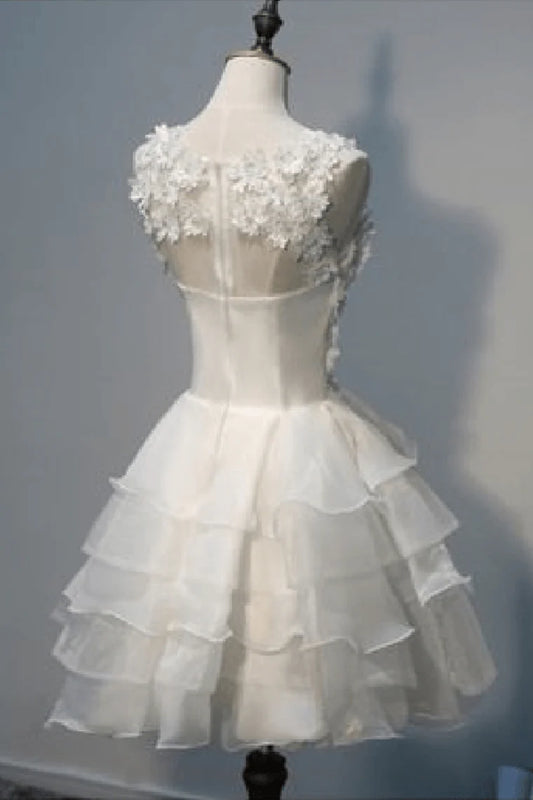 A Line Scoop Organza With Handmade Flowers Short/Mini Homecoming Dresses