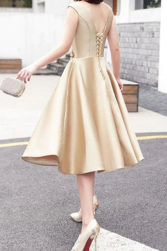 Homecoming Dresses A Line Scoop Satin With Applique Lace Up