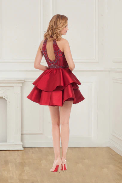 Homecoming Dresses High Neck A Line Satin With Beading Mini