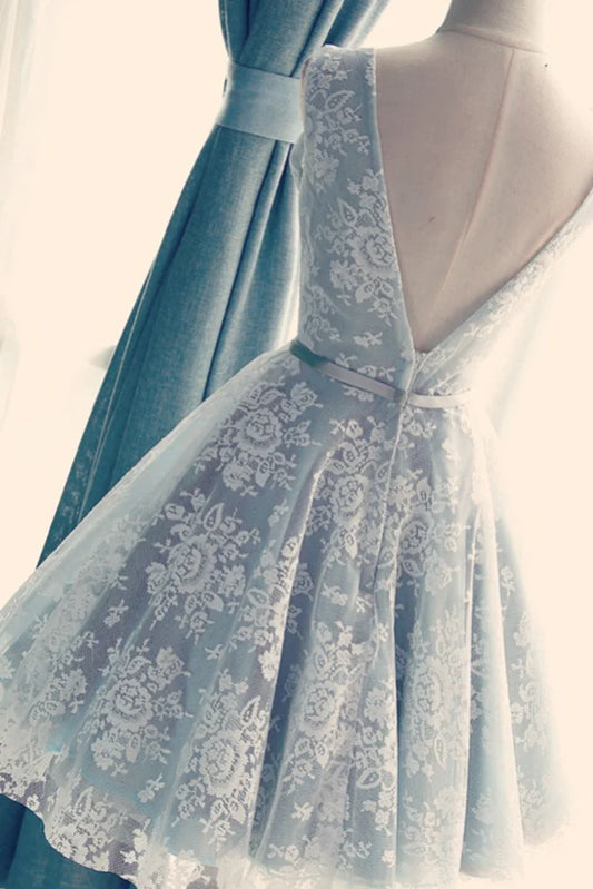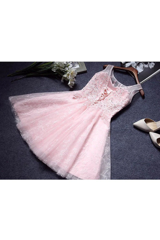 Lace Scoop With Applique A Line Short/Mini Lace Up Homecoming Dresses