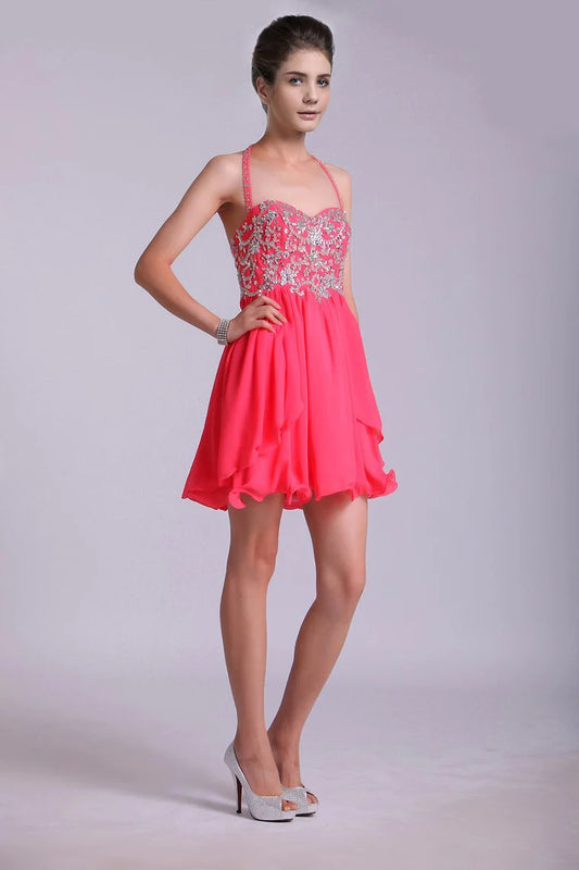 Homecoming Dresses A Line Halter Short/Mini Chiffon With Beading Sequins