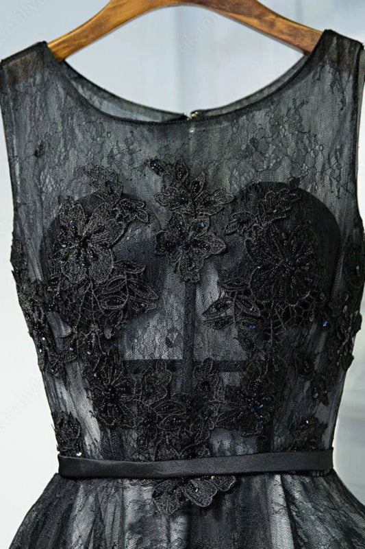 Lace Scoop With Applique And Sash A Line Homecoming Dresses