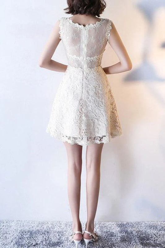 Homecoming Dresses A Line Scoop Lace Short/Mini Zipper Up