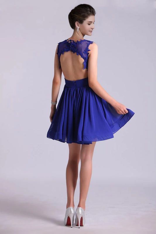 Hot Selling Homecoming Dresses Scoop A-Line Short/Mini Chiffon Dark Royal Blue