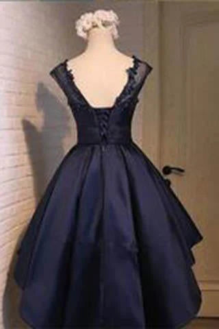 Navy blue Satin Classy Sexy Cocktail Dress Charming Graduation Dress Homecoming Dresses