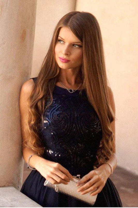 Popular Round Neck Sequins Dark Blue Short Cocktail Dresses Homecoming Dresses