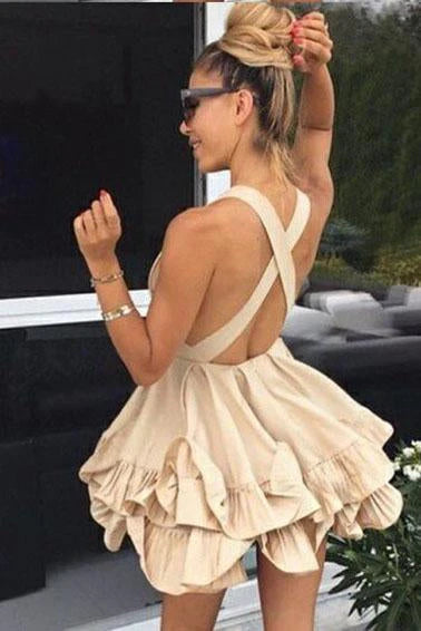 Cute Satin Sleeveless Criss Cross Above Knee Homecoming Dresses Short Cocktail Dresses