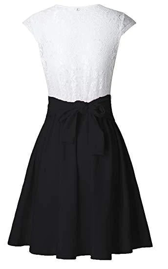 Simple A Line Lace White and Black Homecoming Dresses with Satin Above Knee Cocktail Dress