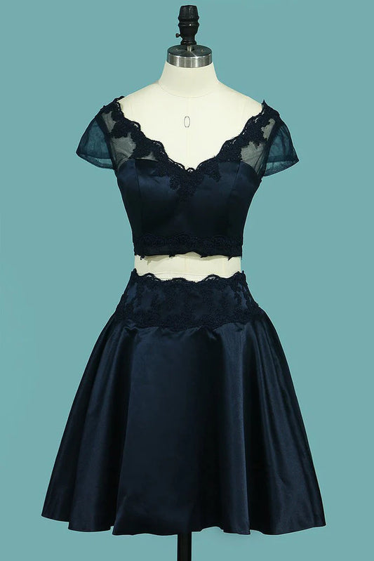 Two-Piece V Neck Cocktail Dresses Satin With Applique A Line