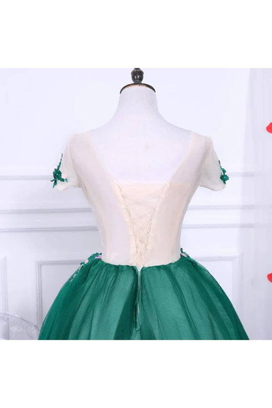 A Line Short Sleeves Tulle Floral Appliques Short Cocktail Dresses