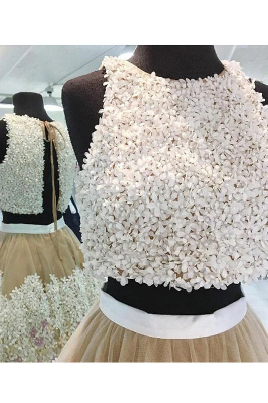Two-Piece Scoop Cocktail Dresses A Line Tulle With Handmade Flowers