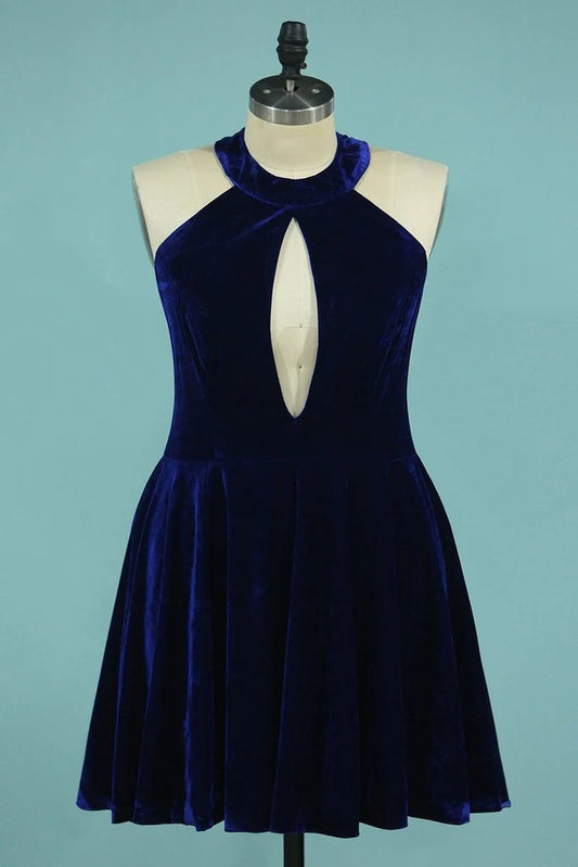 Velvet Scoop Open Back A Line Short/Mini Cocktail Dresses
