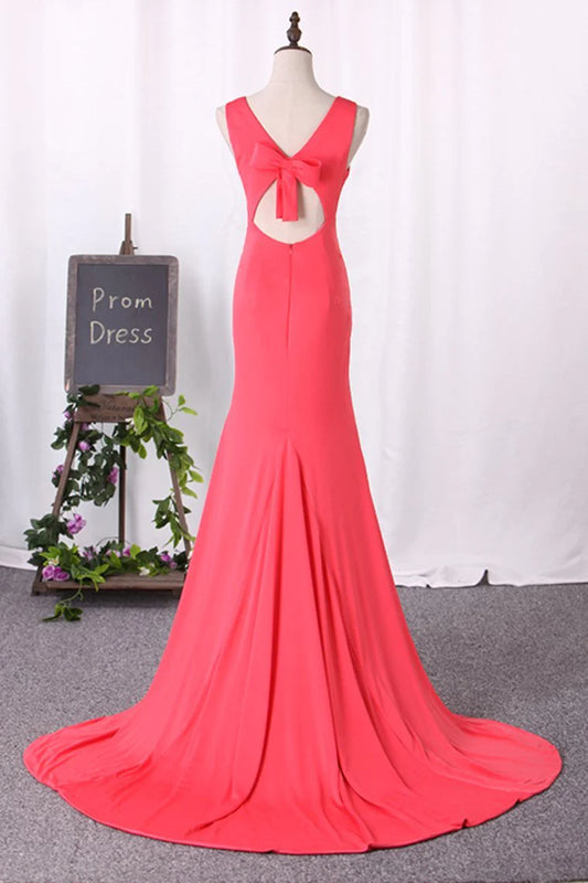 Mermaid Party Dresses Scoop Open Back Spandex With Bow Knot