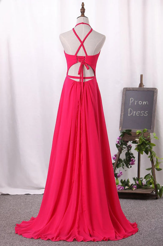 New Arrival A Line Chiffon Halter Open Back Party Dresses