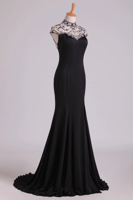 Party Dresses High Neck Spandex With Beading Mermaid Sweep Train
