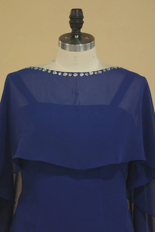 Scoop Party Dresses Sheath/Column With Beads Chiffon Sweep Train