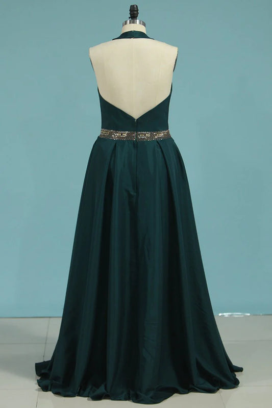 Halter Taffeta A Line Party Dresses Floor Length Zipper Up