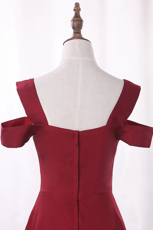 Straps Satin A Line Party Dresses Sweep Train Zipper Up
