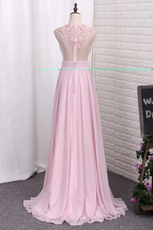 A Line Party Dresses Chiffon Scoop With Ruffles And Applique
