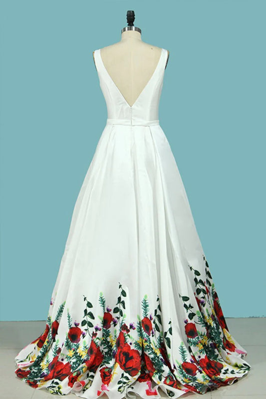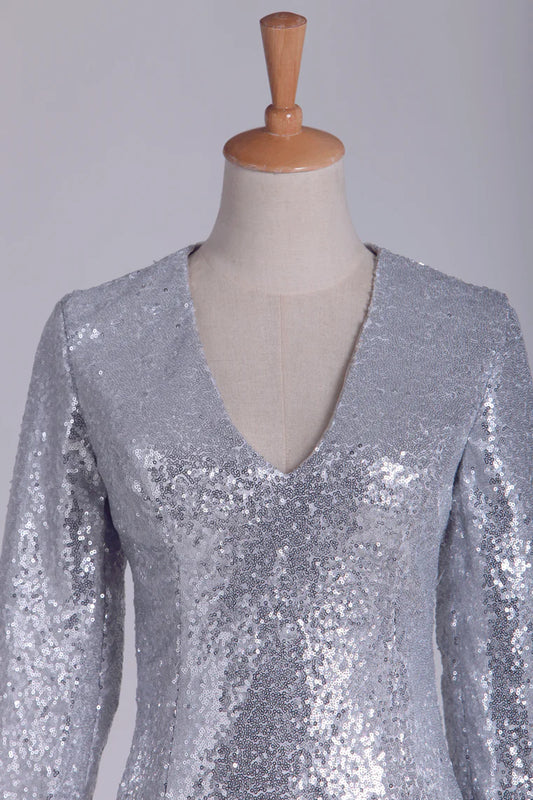 Long Sleeves V Neck Sequins Party Dresses Sweep Train