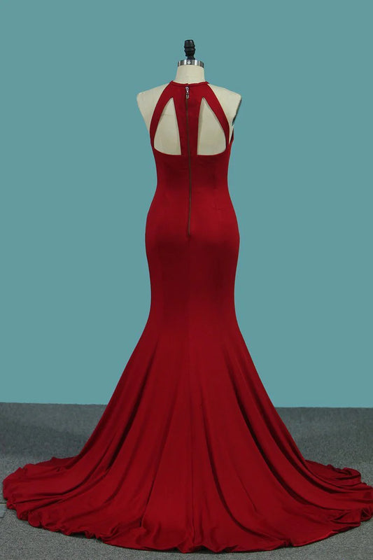 Open Back Scoop Spandex Mermaid Party Dresses Sweep Train