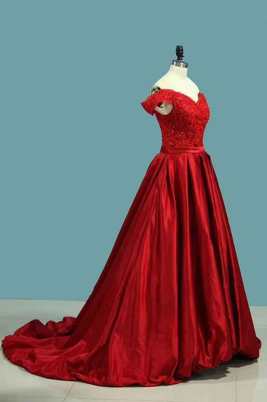 Party Dresses A Line Off The Shoulder Satin With Applique